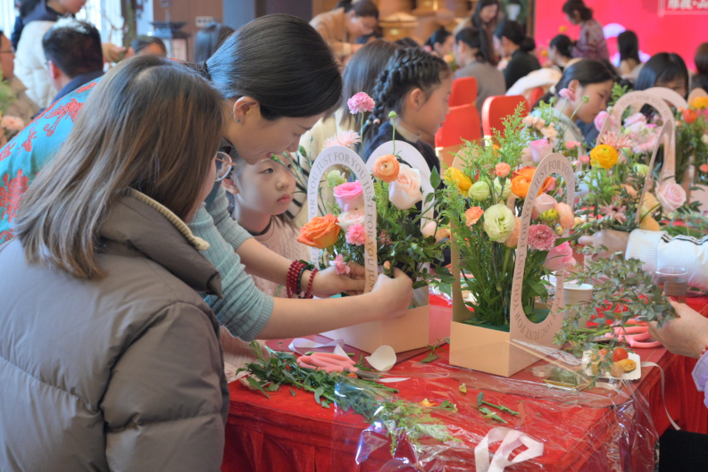 活動(dòng)現(xiàn)場(chǎng),專業(yè)花藝師以豐富的知識(shí)和生動(dòng)的語言,深入講述插花藝術(shù),分享不同風(fēng)格插花作品的設(shè)計(jì)理念,耐心教授插花技巧。在花藝?yán)蠋煹闹笇?dǎo)下,嘉賓們紛紛動(dòng)手實(shí)踐,巧手扦插,盡情享受著花藝創(chuàng)作的愉悅,臉上洋溢著喜悅的笑容,紛紛合影留戀。